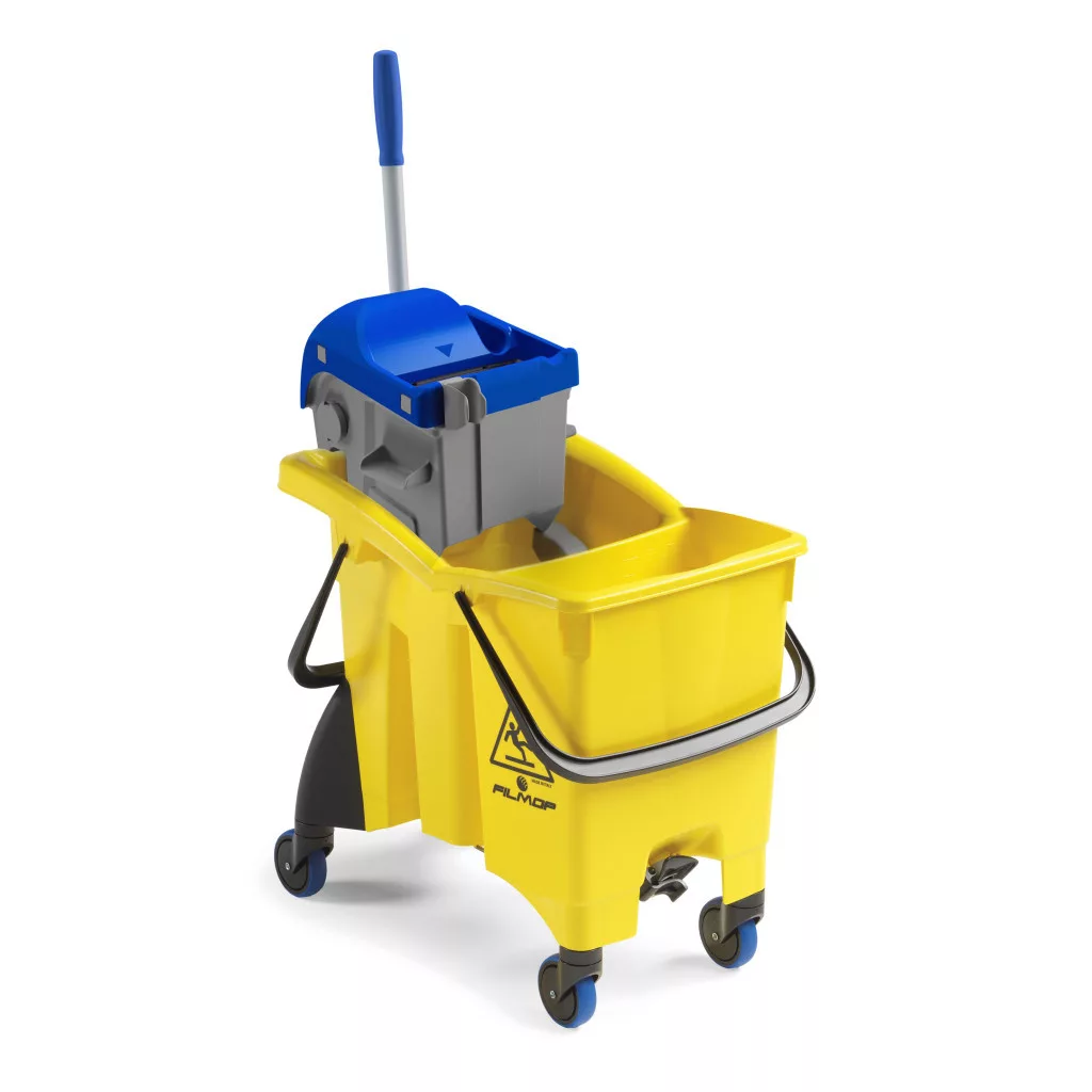 TWICE ütésálló műanyag vödör 30 l-es, két leeresztő dugóval és Boost MOP préssel. Alkalmas közepes-nagy területek padlójának professzionális tisztítására.