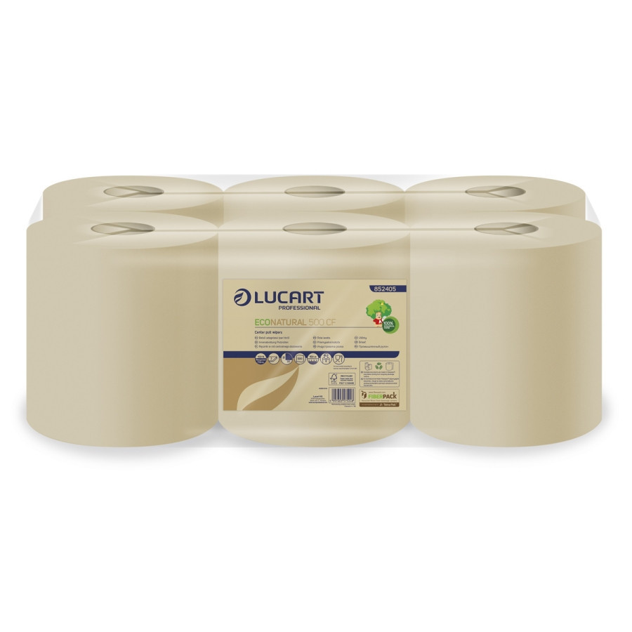 Lucart ECO Natural 500CF tekercses kéztörlő 2 rétegű, 500lap, 150m, 6 tekercs/zsugor, 40zsugor/raklap