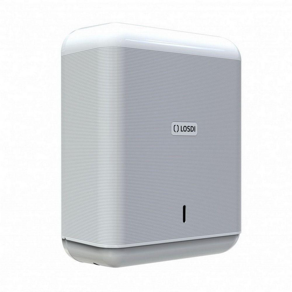 A LOSDI, spanyol gyártó legújabb termékcsaládja az ECO-LUX ,költséghatékony megoldás bármely mosdó felszereléséhez. Egyszerű anyaghasználat és stílusos megjelenés jellemző a termékre. A hajtogatott kéztörlő adagoló C, és V hajtott kéztörlő papír adagolására alkalmas. 600 lapos kapacitása elegendő a nagyobb forgalmú helyekre is. Fehér, ABS műanyag háza kulccsal zárható.
