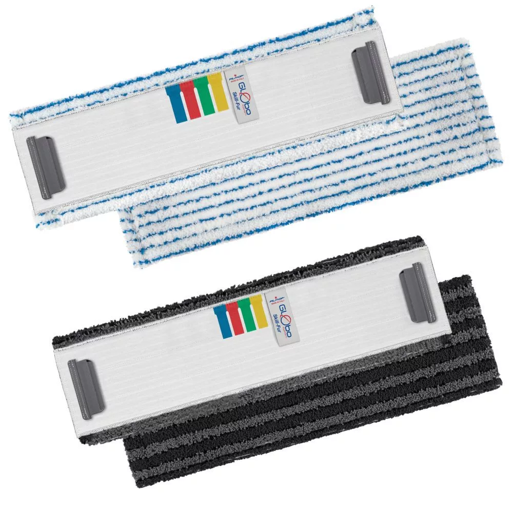 GLOBO SKILL-FUR mikroszálas felmosó csíkokkal, poliészter hátlappal, mikro fülekkel és színkódos címkékkel Alkalmazások: Ideális portörléshez, nedves felmosáshoz és fertőtlenítéshez.