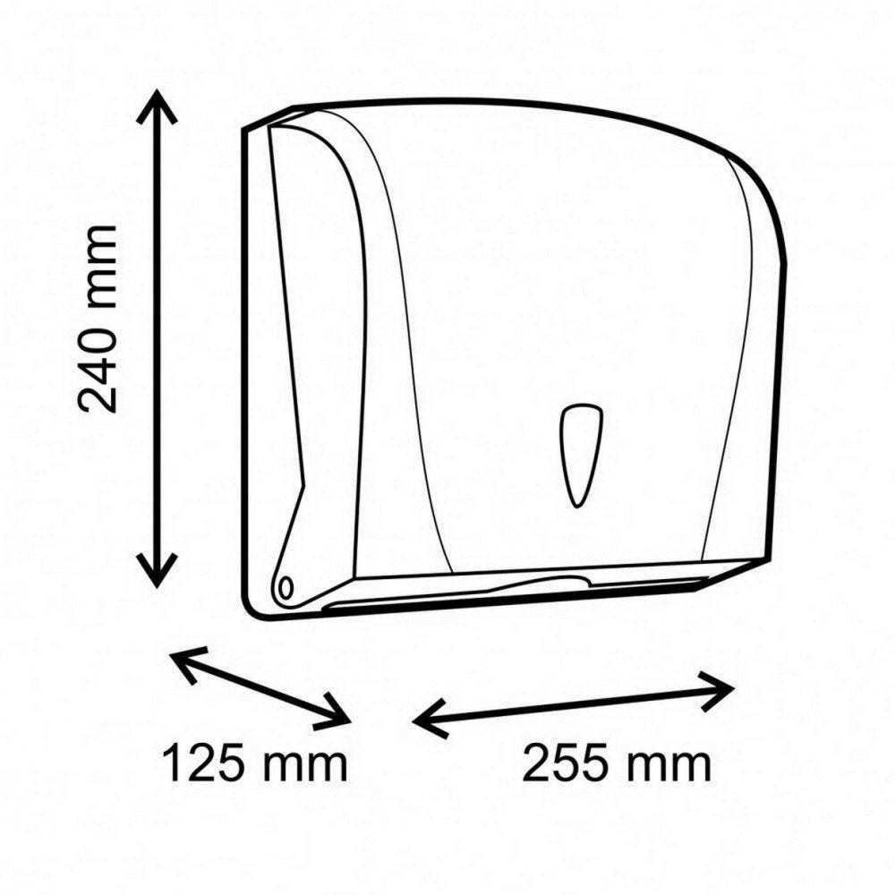 - V hajtogatott kéztörlő papír adagoló a papír mérete maximum 24cm széles, maxium 11cm az összehajtott méret