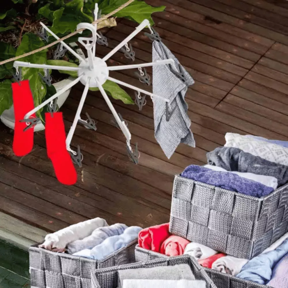 A tartós polipropilén anyagból készült szárító beltéren és kültéren egyaránt megállja a helyét, hiszen ellenáll az időjárás viszontagságainak. A tetején található, 360 fokban elforgatható nagyméretű akasztókampó segítségével egyszerűen rögzítheted ruhaszárító kötélre, kerti szárítóra vagy akár a fürdőszobai törölközőtartóra is. Könnyű súlyának és kis méretének köszönhetően nemcsak otthoni használatra, hanem kempingezéshez vagy utazáshoz is kiváló társ. Válaszd a kényelmet és a rendet a mindennapi házimunka során!