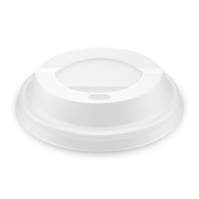 Praktikus, fehér színű polipropilén tető 80 mm átmérőjű papírpoharakhoz. Ideális választás forró és hideg italok biztonságos, kiömlésmentes szállításához és fogyasztásához.