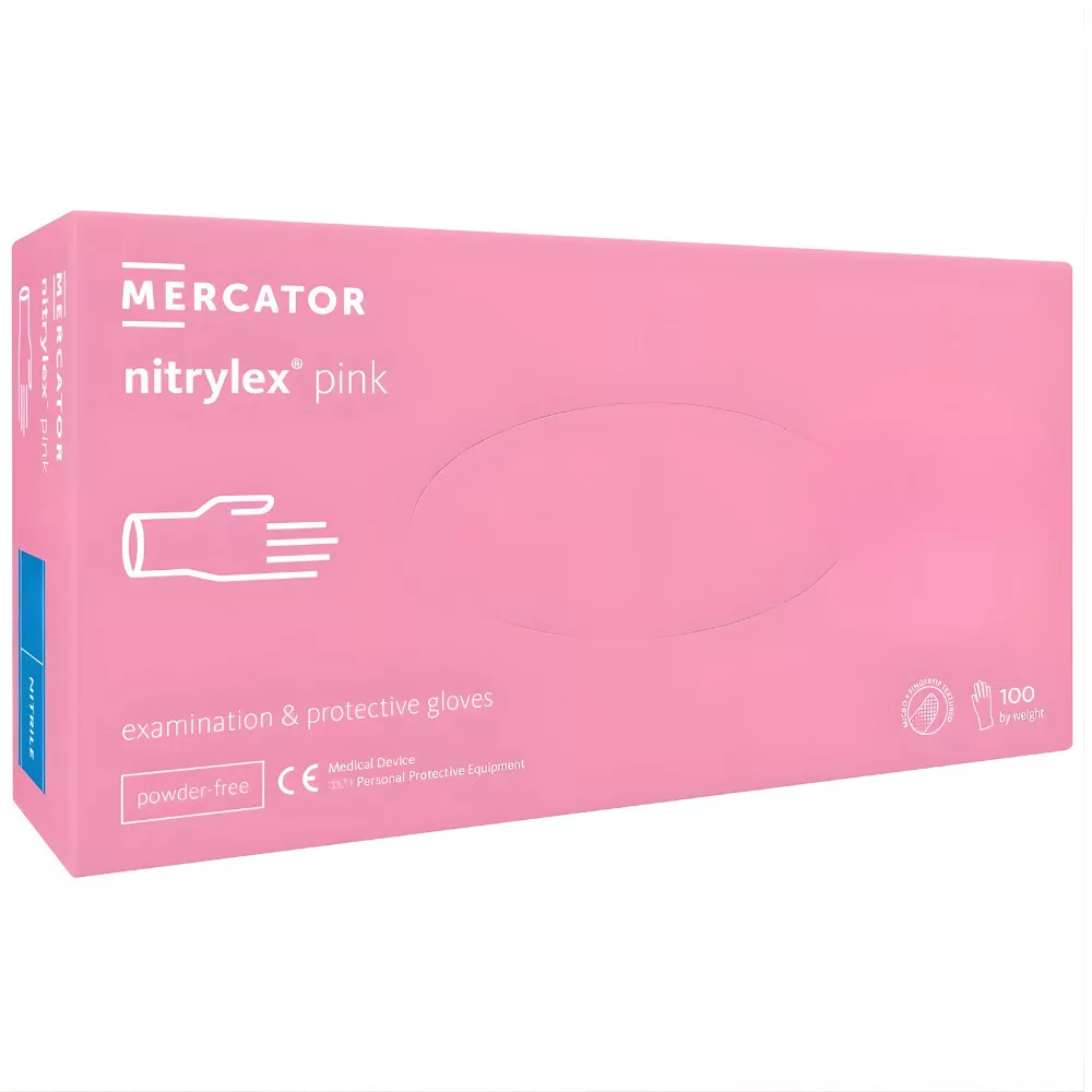 A Mercator nitrylex® pink egy prémium minőségű, púdermentes nitril vizsgálókesztyű, amelyet úgy terveztek, hogy maximális védelmet és kényelmet nyújtson. Hatékony gátat képez a baktériumokkal, vírusokkal és gombákkal szemben, így megbízható választás az egészségügy, a szépségipar és az élelmiszeripar területén is. Mivel ez a nitril kesztyű teljesen latexmentes, kiküszöböli az I. típusú allergiás reakciók kockázatát, így az érzékeny bőrűek is biztonsággal használhatják.