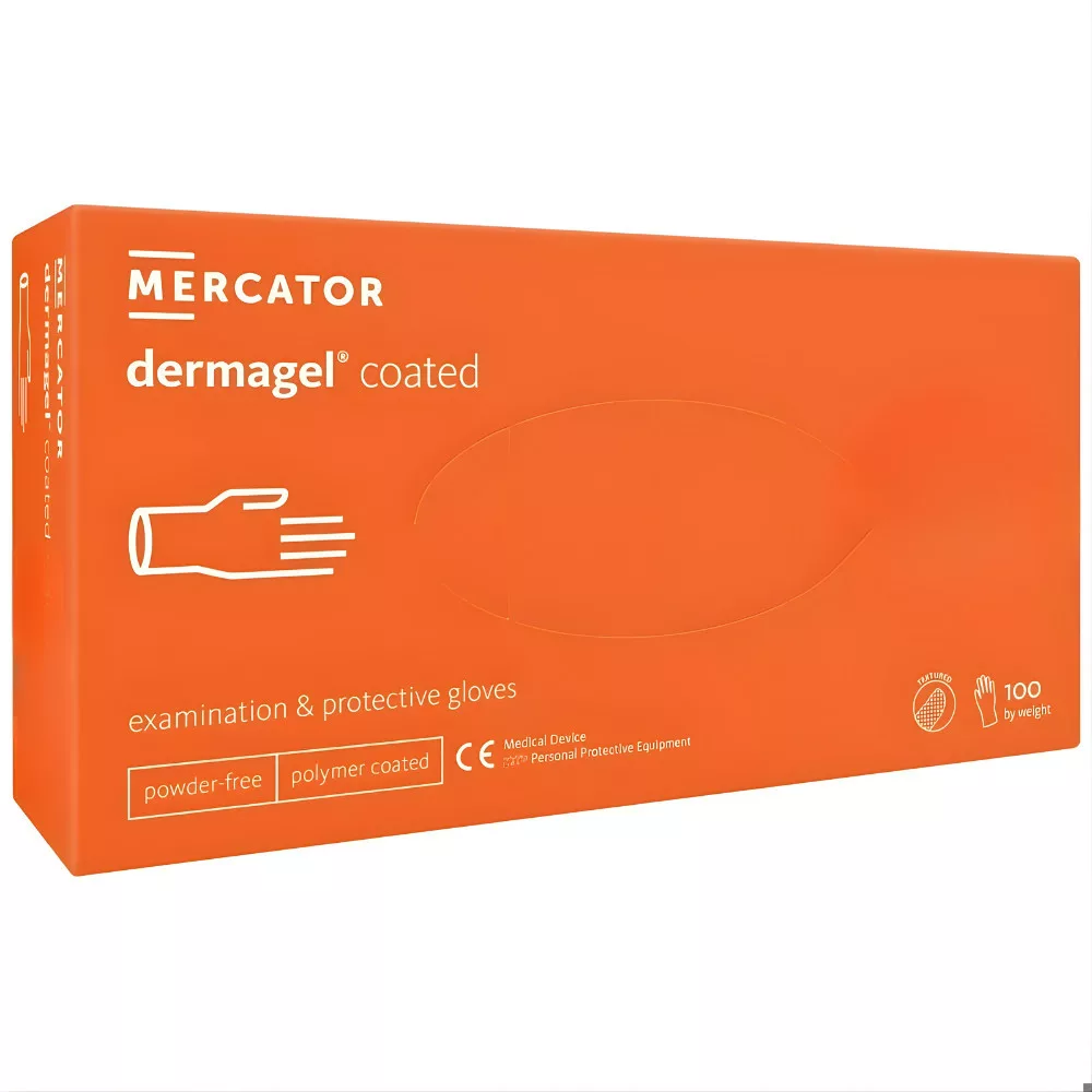 A Mercator Dermagel Coated egy prémium minőségű, púdermentes latex vizsgálókesztyű, amelyet a mindennapi munka megkönnyítésére terveztek. Különlegessége a belső polimer bevonat, amely lehetővé teszi a kesztyű gyors és egyszerű felhúzását még nedves kézre is, így időt takaríthatsz meg. A természetes gumiból készült latex anyag kivételes rugalmasságot és szakítószilárdságot biztosít, miközben a "második bőr" érzetnek köszönhetően a tapintási érzékenység is megmarad.
