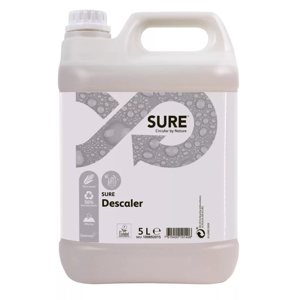 A SURE Descaler az egyedi SURE termékkör tagja, mely 100%-osan lebomló*, növényi alapú összetétellel rendelkező professzionális tisztítószereket kínál minden napi tisztítási feladat elvégzésére. A SURE Descaler egy konyhai vízkőoldószer koncentrátum kézi alkalmazásra, mely hatékonyan használható a konyhai berendezések és eszközök gyakori vízkőtelenítésére.
