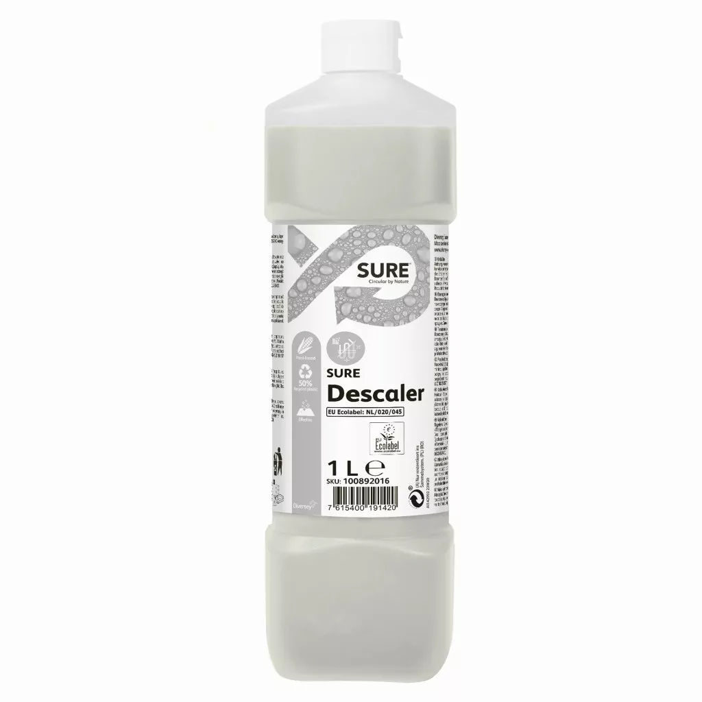 A SURE Descaler az egyedi SURE termékkör tagja, mely 100%-osan lebomló*, növényi alapú összetétellel rendelkező professzionális tisztítószereket kínál minden napi tisztítási feladat elvégzésére. A SURE Descaler egy konyhai vízkőoldószer koncentrátum kézi alkalmazásra, mely hatékonyan használható a konyhai berendezések és eszközök gyakori vízkőtelenítésére.