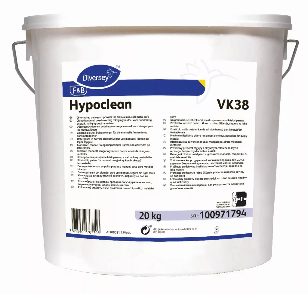 Hypoclean VK38 20kg - Emelt aktívklór tartalmú, erős zsíroldó hatású por, könnyűfém felületkere is