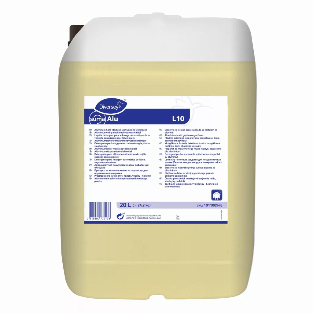 - A Suma Alu L10 egy sárga színű folyékony mosószer, amelyet kifejezetten az egy- és többtartályos mosogatógépek széles választékához fejlesztettek ki. A termék elsősorban lágy és közepesen kemény vízben történő használatra készült. Lúgok keverékét és erős vízkőgátló szert tartalmaz a szennyeződés hatékony eltávolításához. A készítmény korróziógátló anyagokat is tartalmaz, ami alkalmassá teszi a puha fémes felületekre, például alumíniumra és ezüstre való használatra.