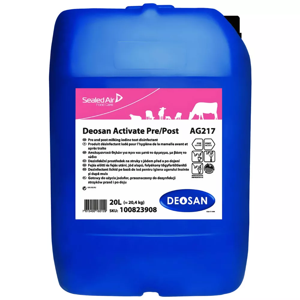 Deosan Activate Pre/Post AG217 20L - Tőgybimbó-fertőtlenítő szer, fejés előtt és/vagy után: habosítás, permetezés, bemártás - kézi és (fél) automatikus