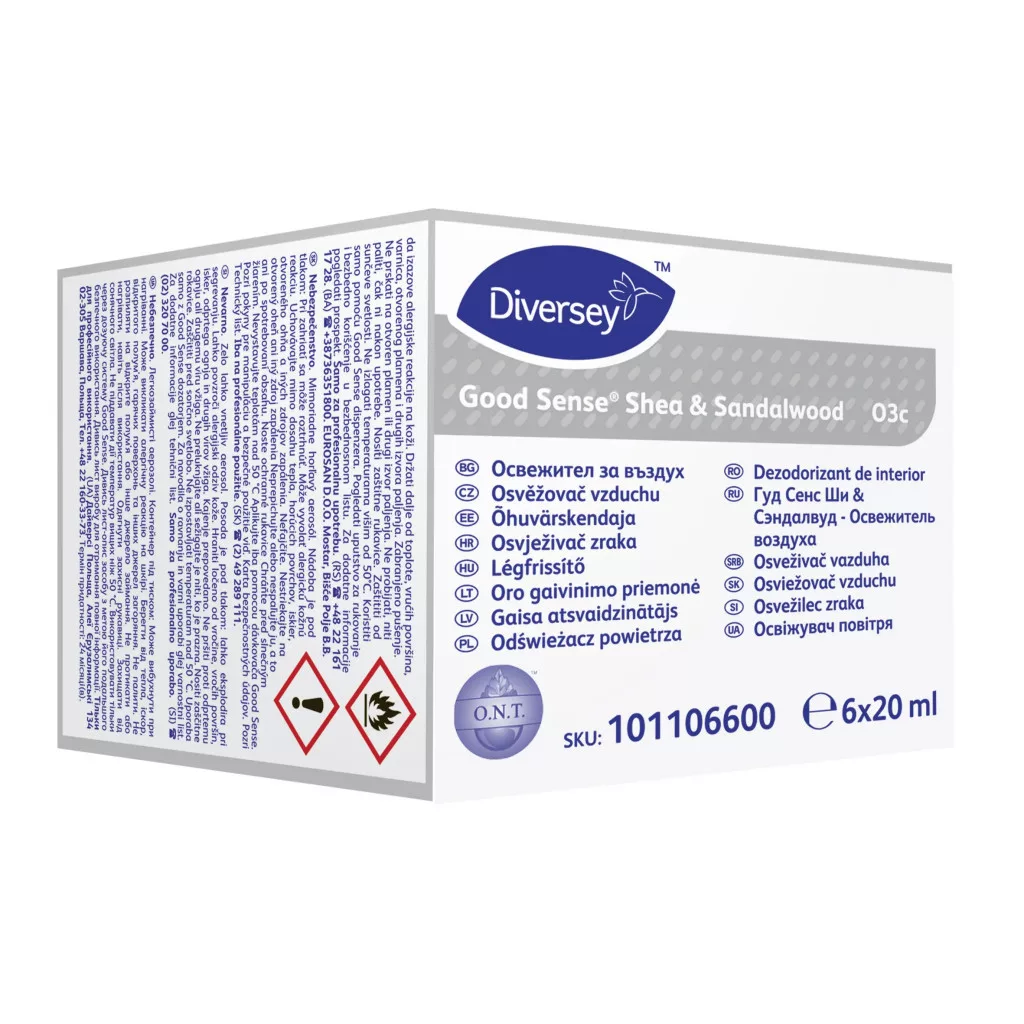 Szuper koncentrált utántöltő patron, finom, száraz illat diszperziót biztosít. Az illatanyagok a Szagsemlegesítő Technológiát (O.N.T technológia) tartalmazzák, amely a forrásnál elpusztítja és kémiailag semlegesíti a kellemetlen szagokat, valamint hatékony a különféle kellemetlen szagok ellen, mint például a vizelet, a testszagok, a füst, és a penész. A Good Sense Shea és szantálfa jelentősen csökkenti a kellemetlen szagokat közvetlenül az illat használata után, négy órás maradandó hatás mellett.