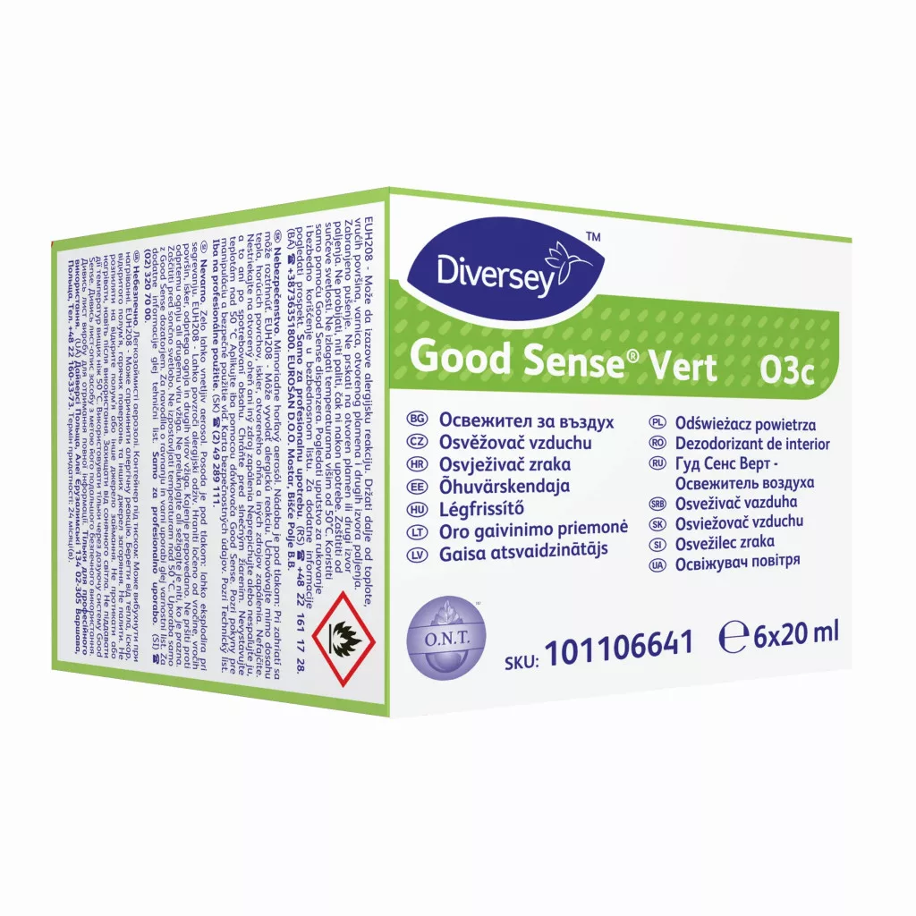 Szuper koncentrált utántöltő patron, finom, friss illat diszperziót biztosít. Az illatanyagok a Szagsemlegesítő Technológiát (O.N.T technológia) tartalmazzák, amely a forrásnál elpusztítja és kémiailag semlegesíti a kellemetlen szagokat, valamint hatékony a különféle kellemetlen szagok ellen, mint például a vizelet, a testszagok, a füst, és a penész. A Good Sense Vert jelentősen csökkenti a kellemetlen szagokat közvetlenül az illat használata után, négy órás maradandó hatás mellett.