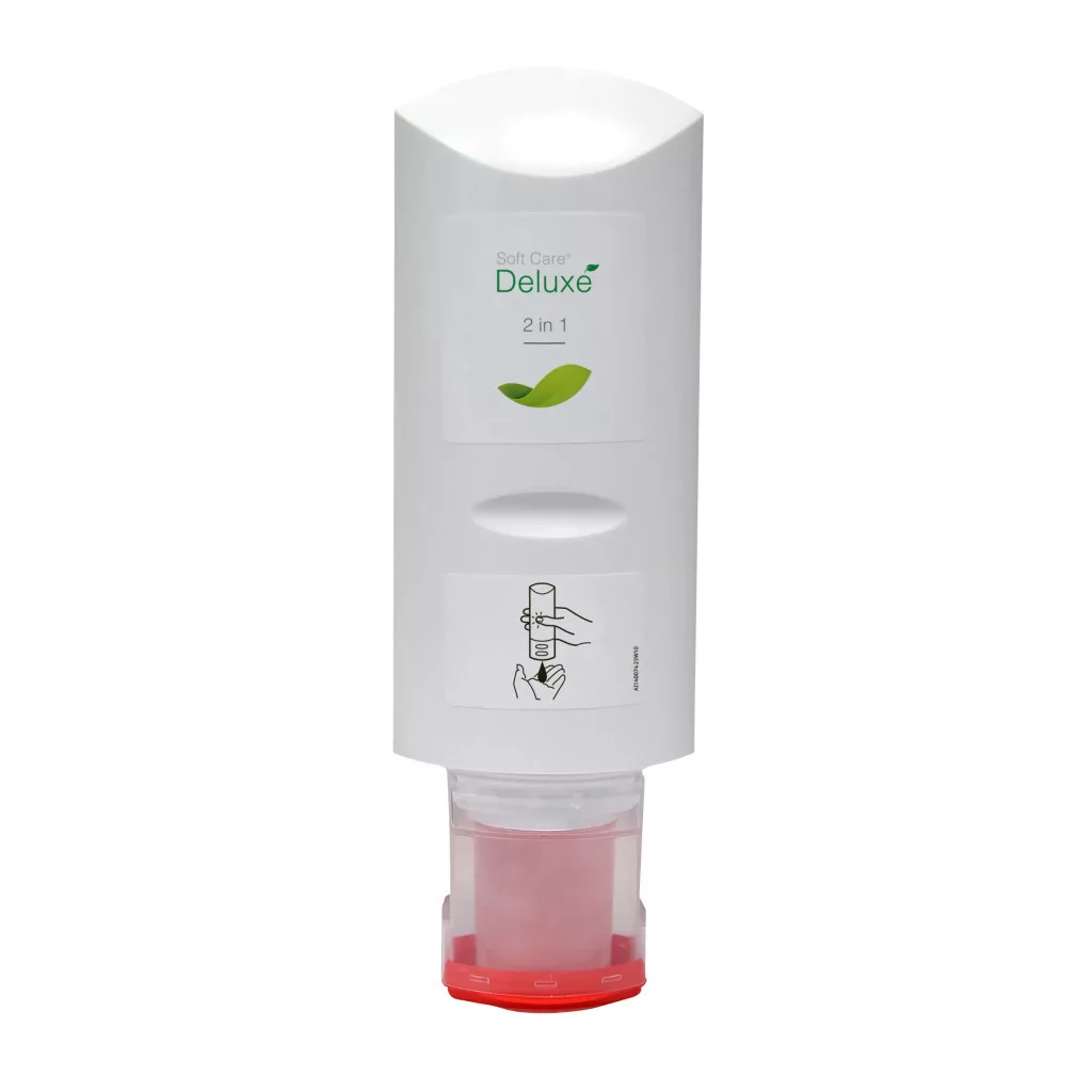 A Soft Care Deluxe 2 az 1-ben egy ökológiai tanúsítvánnyal rendelkező, gyengéd és ápoló hatású kondicionáló sampon, balzsam és tusfürdő. Lágy, kényeztető habot képez, habfürdőként is használható. A Soft Care Deluxe 2 in 1 kiváló minőségű, felhasználóbarát, környezetbarát megoldás a vendéglátó-, sport-, szabadidős, spa és wellness létesítmények mosdó- és zuhanyzóhelyiségeiben.