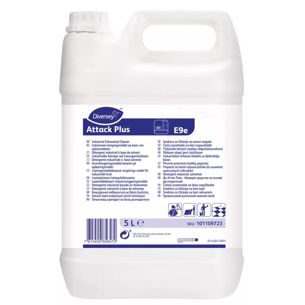 A DI Attack Plus egy erős hatékonyságú, oldószer-alapú tisztítószer. A DI Attack Plus kitűnő zsíroldószer, mely kifejezetten alkalmas ipari környezetben történő takarításra és kátrány vagy korom által okozott kármentesítésre. A DI Attack Plus hatékonyan eltávolítja a szerves olajos és zsíros szennyeződéseket az élelmiszert feldolgozó területeken.