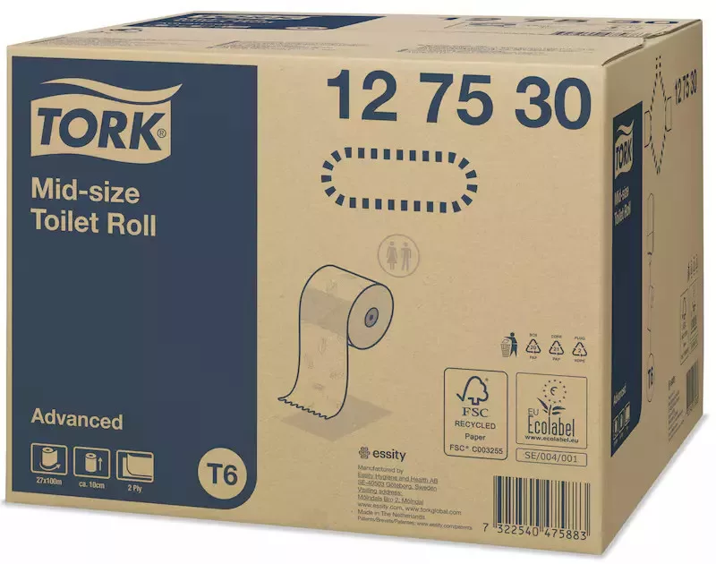A Tork duplatekercses Mid-Size toalettpapír adagoló modern és hatékony rendszere kiváló választás az olyan alacsony és közepes forgalmú mosdókba, ahol fontos a vendégek elégedettsége. Rendkívül hatékony és folyamatos toalettpapír-utánpótlást biztosít a vendégeknek. A Tork Soft Mid-size toalettpapír tökéletes egyensúlyt teremt az ár és a minőség között.