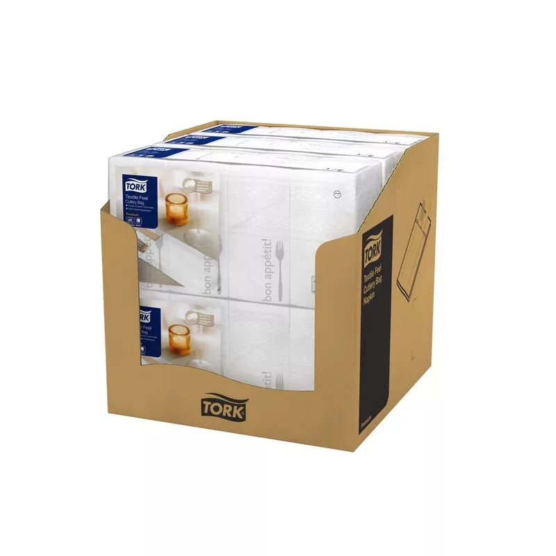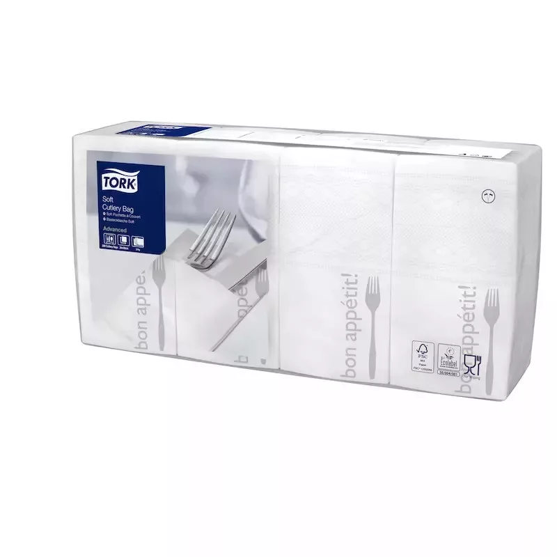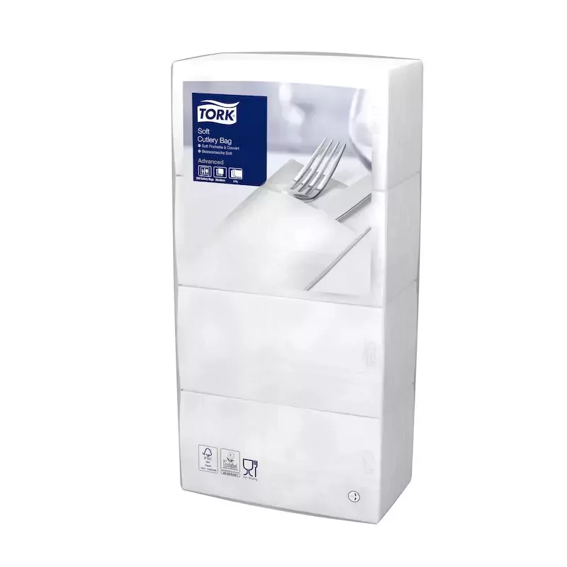 A Tork Jó étvágyat szervizszalvétákat az olyan teljes körű kiszolgálást nyújtó éttermeknek ajánljuk, amelyek minőségi légkörrel szeretnék lenyűgözni vendégeiket. Esztétikus hajtogatásuk révén alkalmasak az evőeszközök gyors és elegáns elhelyezésére, ugyanakkor szalvétaként is használhatók. Növelje a vendégek kényelmét a 3 rétegű, nagy nedvszívó képességű szalvétákkal.