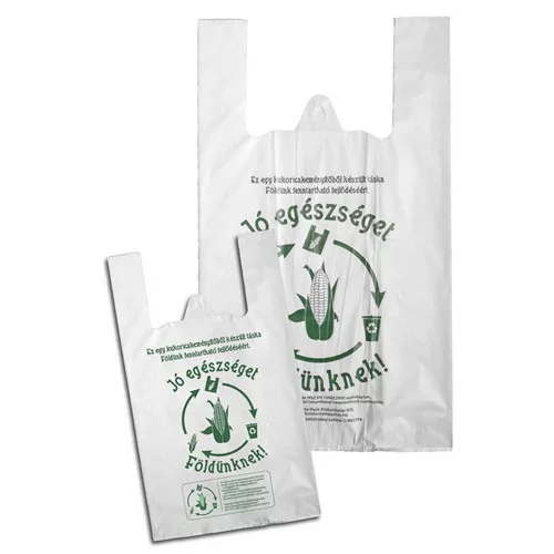 A Bio kukoricakeményítő alapú szatyor környezetbarát alternatívát kínál a hagyományos műanyag zacskók helyett. Az EN13432 szabványnak megfelelően teljes mértékben biológiailag lebomló és komposztálható, így ideális választás mind vállalkozások, mind magánfelhasználók számára, akik fontosnak tartják a fenntarthatóságot és a környezet védelmét.