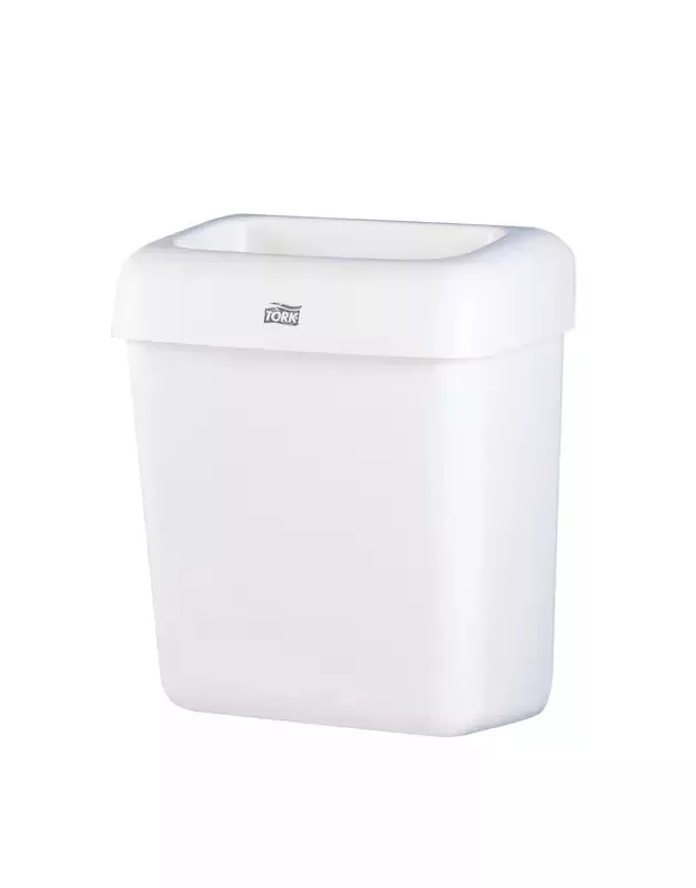 A 20 literes Tork hulladékgyűjtő jól illeszkedik különféle mosdóhelyiségekbe, szükség esetén pedig falra is szerelhető.