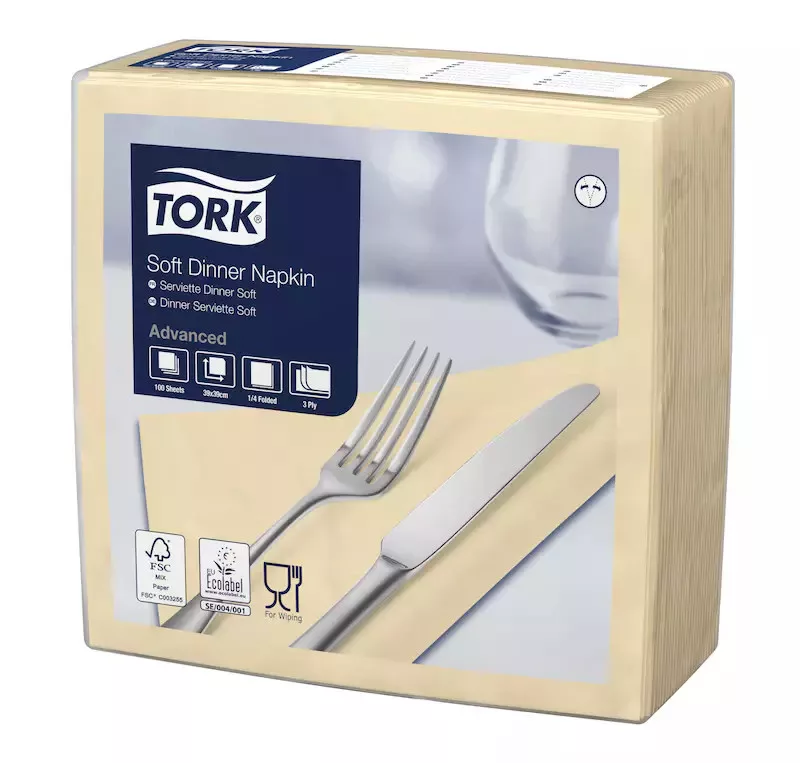 A Tork Soft Dinner szalvéták az elegáns étkezések kiváló kiegészítői. Növelje a vendégek kényelmét a 3 rétegű, nagyméretű szalvétákkal, melyek gazdag színkínálata tökéletesen illeszkedik az étterem enteriőrjébe.