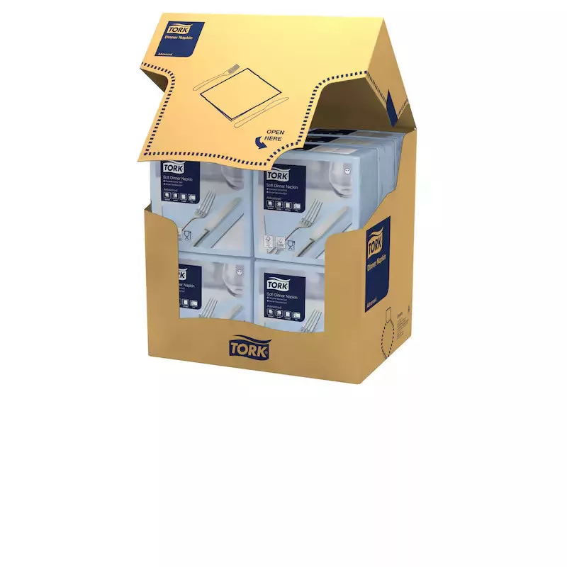 A Tork Soft Dinner szalvéták az elegáns étkezések kiváló kiegészítői. Növelje a vendégek kényelmét a 3 rétegű, nagyméretű szalvétákkal, melyek gazdag színkínálata tökéletesen illeszkedik az étterem enteriőrjébe.