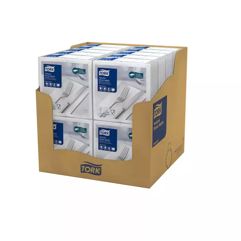 A Tork textilhatású Dinner szalvéta tökéletesen illeszkedik bármelyik étterem színvilágához. Kiváló minőségű, és a könnyű kezelhetőség miatt ideális választás az elegáns és praktikus étkezőhelyiségek számára.