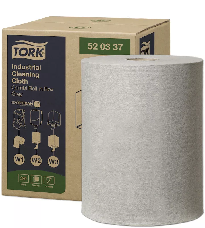 A Tork ipari tisztítókendő remekül kiváltja a gép- és bérrongyokat. Puha és rugalmas kivitele miatt szűk helyek és bonyolult alkatrészek tisztításához is kiváló, mivel nem sérti fel a felületüket, mégis elég erős ahhoz, hogy olajat, zsiradékot és szennyeződéseket itassanak fel vele. Emellett a legtöbb tisztítószerrel használható. A Tork hordozható vagy fali állványos adagolókhoz használható, amelyek biztonságos és hatékony eszközök, illetve a Tork Maxi belsőmagos adagolóba vagy a Tork Maxi dobozos kombi tekercses adagolóba is behelyezhető, amelyekkel megoldható az egykezes adagolás.