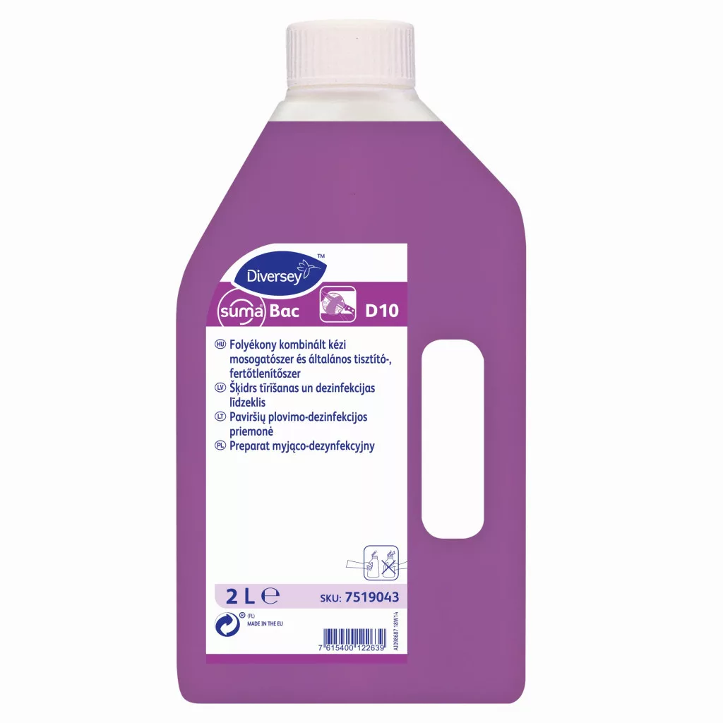 - A Suma Bac D10 folyékony fertőtlenítő tisztítószer koncentrátum, amely a felületet egy lépésben tisztítja és fertőtleníti. A termék alkalmas valamennyi élelmiszerrel érintkező felület tisztítására. A benne lévő biocid hatóanyagnak köszönhetően, a mikroorganizmusok széles skálája ellen hatékony - elpusztítja a baktériumokat és gombákat is. A kiváló tisztító hatást a készítményben lévő felületaktív anyagok biztosítják.