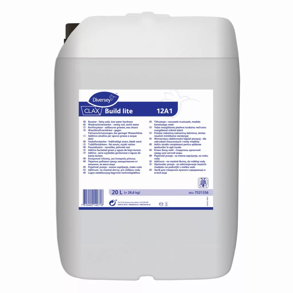- A Clax Build lite nagyhatású, lúgosságot és vízlágyítóhatást fokozó szer, amelynek alapját lúgos összetevők, vízkeménység-csökkentő anyagok és szürkülésgátló összetevők kiegyensúlyozott elegye alkotja. Az erős komplexképző rendszer alacsony vízkeménységű ion koncentrációt biztosít, így megakadályozza a mosószer összetevőinek kiválását. Emellett szürkülésgátlóként is szolgál, hiszen megakadályozza a vízkeménységből adódó sók lerakódását a ruhákra. A termék alkalmazása leggyakrabban a felületaktív anyagok hatását fokozó szerekkel együtt történik. Fehérítőszerrel együtt alkalmazva hatékony rendszert alkot, amely kórházak és más egészségügyi intézményekben keletkező szennyes textíliák mosására is használható. A főmosásnál használt mosószerrel kombinálva a Clax Build lite javítja az erősen szennyezett textíliák mosásának hatékonyságát azáltal, hogy megnöveli a mosóoldat pH-értékét, és növeli megkötőképességét (vízkeménység megkötése).