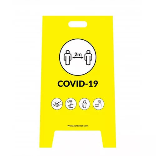 A COVID-19 biztonsági előírásokra figyelmeztető tábla fontos eszköz a járványügyi intézkedések betartásának elősegítésére.