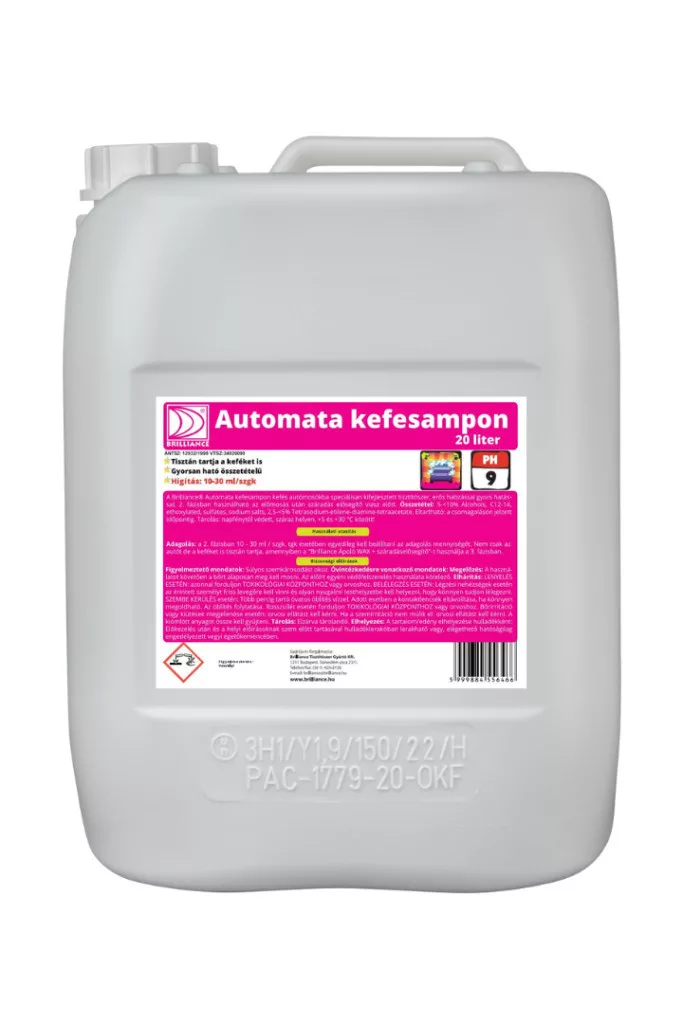 A Brilliance® Automata kefesampon kefés autómosókba speciálisan kifejlesztett tisztítószer autómosó kefe tisztítására, erős habzással, gyors hatással. 2. fázisban használható az előmosás után száradás elősegítő viasz előtt.