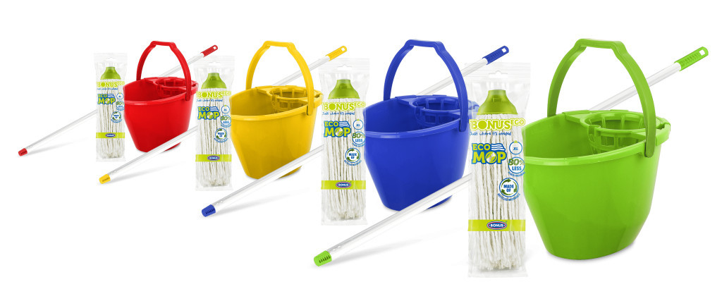 A BONUS CottonMOP XL szett mindent tartalmaz, ami egy jó takarításhoz szükséges: prémium minőségű pamutmop, stabil vödör, és teleszkópos nyél. A vödör 11 literes, vastag falú és kiegyensúlyozott súlyponttal rendelkezik, stabilitást biztosít. A benne lévő forgó basket (öblítőkosár) lehetővé teszi a mop könnyebb öblítését, kevesebb erőkifejtéssel. A mop maga magas felszívóképességű, újrahasznosított pamutból készült, amely környezetbarát és tartós — így kevésbé terheli a környezetet, miközben hatékonyan tisztít. A 120 cm-es nyél négy különböző színű csavarral csatlakoztatható, kompatibilis sok szabványos eszközzel. A szett univerzálisan használható konyhákban, fürdőkben, nappalikban, de még kültéri területeken is.