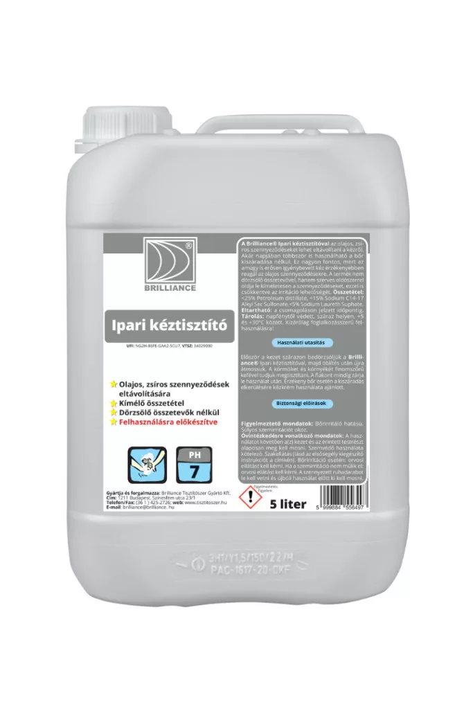 A Brilliance® Ipari kéztisztítóval az olajos, zsíros szennyeződéseket lehet eltávolítani a kézről. Akár napjában többször is használható a bőr kiszáradása nélkül. Ez nagyon fontos, mert az amúgy is erősen igénybevett kéz érzékenyebben reagál az olajos szennyeződésekre. A termék nem dörzsölő összetevővel, hanem szerves oldószerrel oldja le kíméletesen a szennyeződéseket, ezzel is csökkentve az irritáció lehetőségét.
