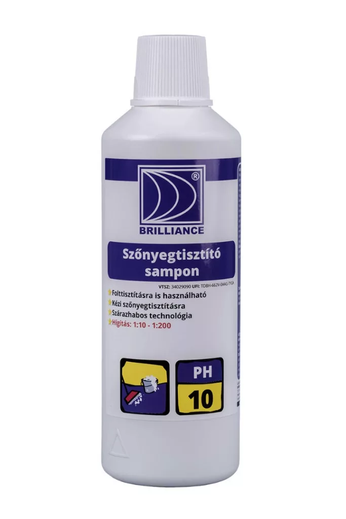 A Brilliance® Szőnyegtisztító sampon változatát kimondottan kézi tisztításra dolgoztuk ki, illetve ha nagyon makacs foltokat kell kitisztítani, gépi takarítás közben. Szárazhabos technológia: ennek az eljárásnak az az előnye, hogy a szőnyeg nem nedvesedik át, ezért hamar megszárad. Továbbá az eszközök is igen egyszerűek és az eljárás könnyen, kis gyakorlással elsajátítható. Csupán egy 16 literes vödör és egy hosszúnyelű kefére van szükség. Nem fontos, hogy a kefe erős szőrű legyen, mert nem a dörzsölő hatással tisztítjuk meg a szőnyeget, hanem vegyileg megkötjük a szennyeződéseket és a rövid száradási idő után, porszívóval kiszívatjuk.