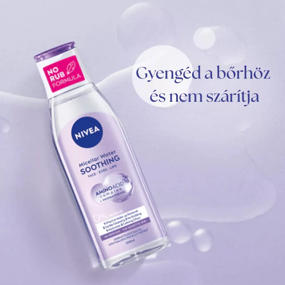 A Nivea Nyugtató Micellás Víz kifejezetten az érzékeny bőr igényeire lett kifejlesztve. Különleges, illatmentes formulája Aminoacid Komplex-szel és Dexpanthenollal gazdagított, amely egy lépésben tisztít, távolítja el a sminket és nyugtatja a bőrt. A tisztító micellák mágnesként vonzzák magukhoz a szennyeződéseket és a sminket, így nincs szükség dörzsölésre. Ez a hatékony arctisztító bőrgyógyászatilag és szemészetileg tesztelt, így biztonsággal használhatod.